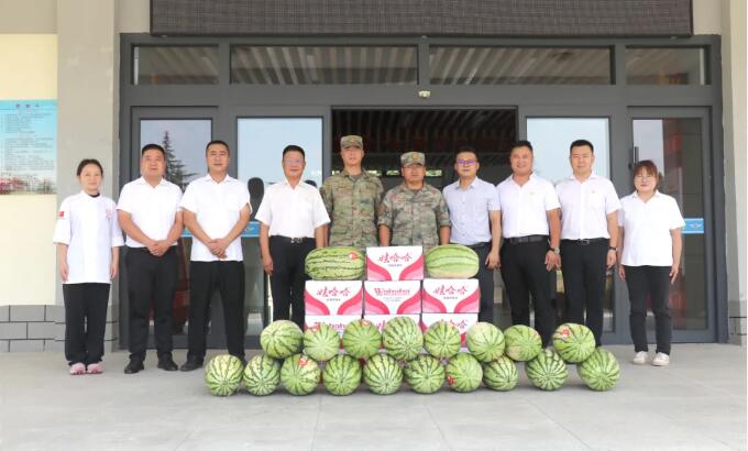 涇陽某部隊領導對學院在理論宣講、文體活動方面對部隊予以的支持表示感謝,并介紹了營區建設,表示將全力支持學院學生國防教育、思政精品項目等建設工作。期間,院長助理李彤代表學院向部隊贈送防暑西瓜五百余斤及十箱礦泉水慰問品。