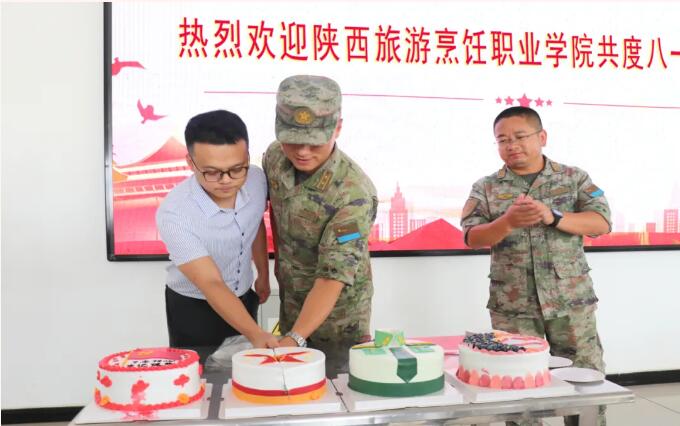 陜西旅游烹飪職業學院作為一所軍創紅色院校,自與涇陽某部隊共建期間,師生多次走進軍營,在活動共建、精神共育、資源互補、協同推動中,形成了系列培訓、專題講座、文化共育精品等活動,強化青年大學生思想政治引領、加強國防教育,軍地攜手推動強軍事業,共同營造弘揚軍隊光榮傳統、傳承優良作風、學習先進典型的濃厚氛圍。